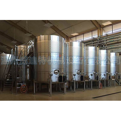 果酒发酵罐的结构特点:采用镜面板套进行冷却,通过温度控制探头,液位控制探头,制冷剂电磁阀,罐体计算机系统设置,根据发酵罐的容量不同而不同。设计冷却区实现了发酵过程的自动温度控制,以快速,高效地完成罐中培养基的冷却和控制。