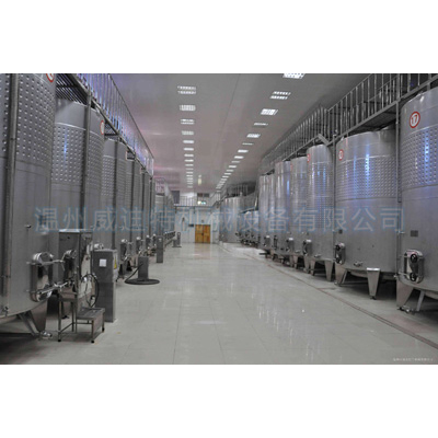 主要用于酒、饮料与各种配料搅拌均匀后进行发酵,是制造酒类、饮料不可缺少的发酵设备。根据葡萄酒、果酒等的不同发酵要求配备不同的发酵罐。水冷式冷冻机组,板式杀菌机/管式杀菌机,发酵罐,冷冻罐,储酒罐,水处理系统等组成果酒的发酵储藏系统。