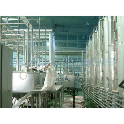 经过上步处理后的果浆为了增加风味需进行调整。调整时加入砂糖、柠檬酸和L-抗坏血酸等配料。其比例为桃肉浆100公斤,27%糖液80公斤、柠檬酸0.45
